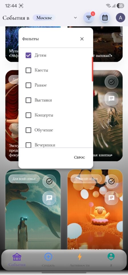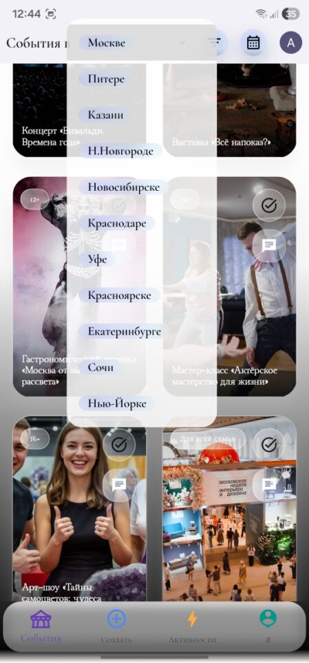 Просматривай мероприятия, сохраняй понравившиеся и формируй собственный список того, что хочешь посетить.