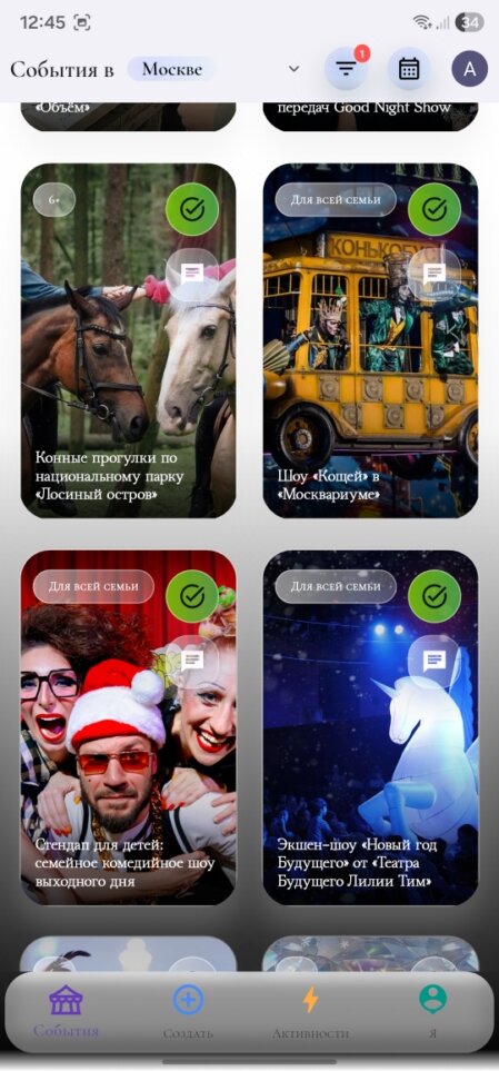 Приложение помогает быстро находить интересные мероприятия в мегаполисах и крупных городах — от концертов и выставок до спортивных событий и уютных локальных встреч. Если ты ищешь, куда сходить в большом городе, Дарю Рулю подскажет актуальные события рядом с тобой.